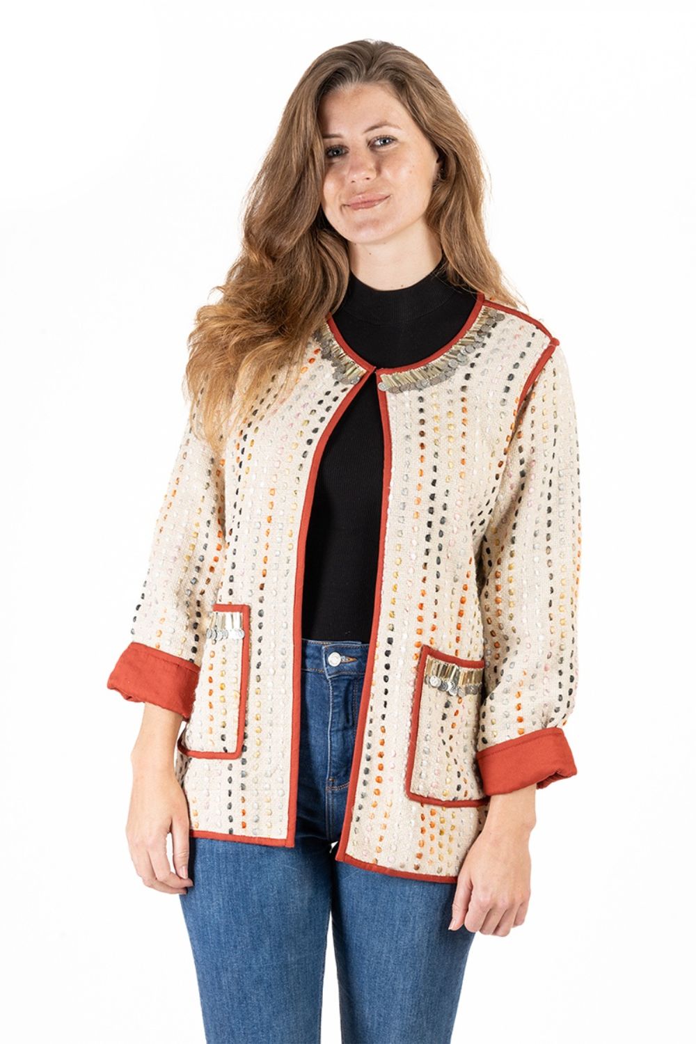 Áo Khoác Boho Kết Kim loại Isla Bonita, chất liệu vải bố cao cấp cá tính, nổi bật phần kim loại đính viền cổ áo, thêu phối trên thân áo. Phom suông. Dài áo 70cm