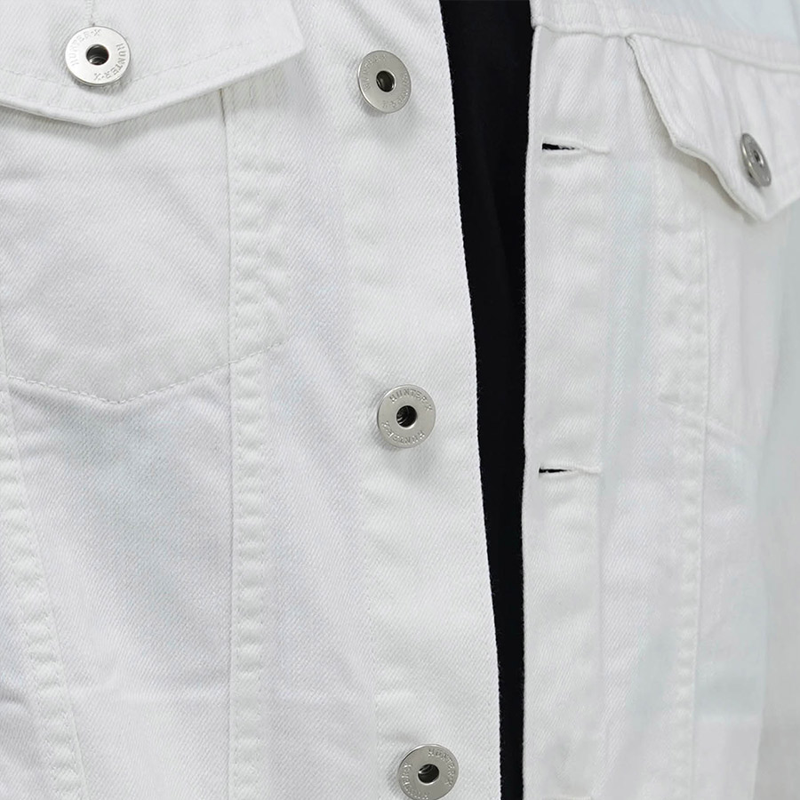 Áo Khoác Jeans Cao Cấp HUNTER X-RAYS Form Slim Cotton Màu Trắng K12 Đặc điểm nổi bật: Nút được đúc nguyên khối bằng đồng và nổi bật thương hiệu HUNTER X-RAYS đảm bảo độ bền