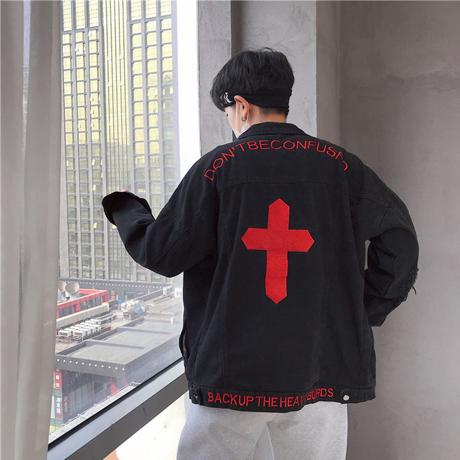 ✨Áo khoác Jeans Nam phối hình chữ Thập thời thượng