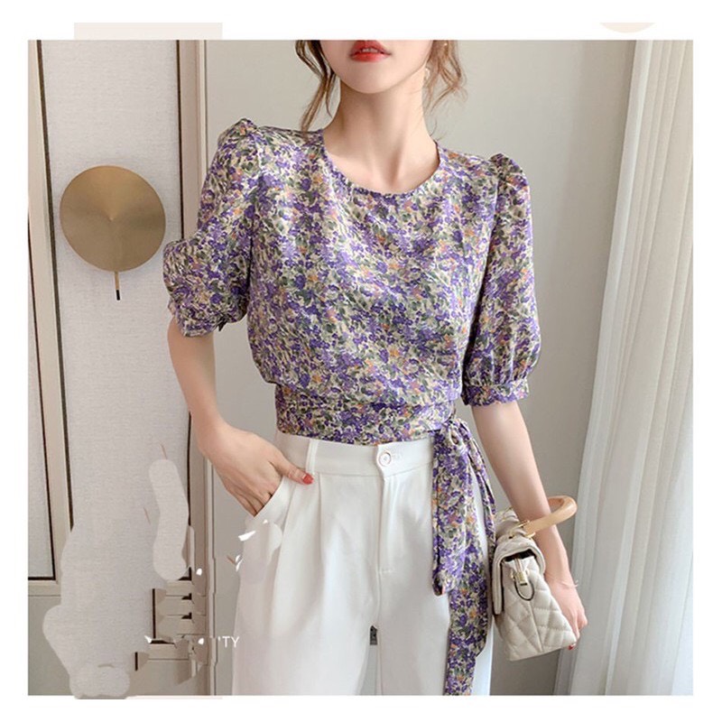 ✨Áo kiểu họa tiết hoa nhí sang trọng, 2 màu thích hợp mặc công sở hoặc dạo phố