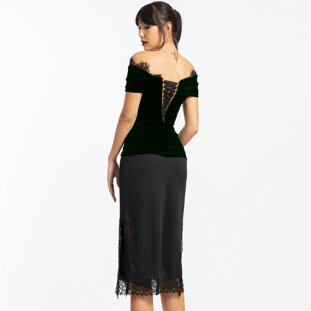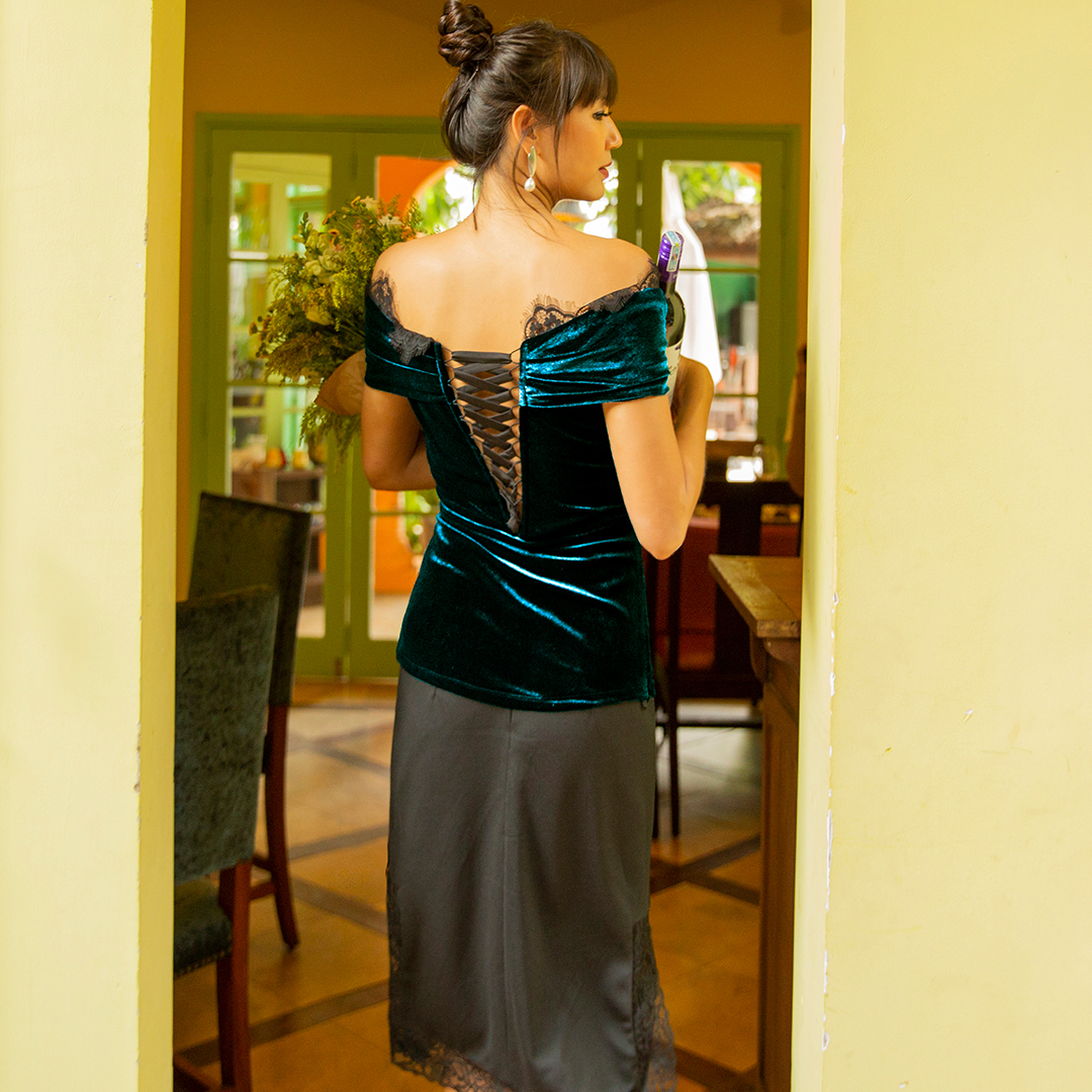 ✨ Áo Kiểu Nữ Cao Cấp Áo Trễ Vai Nhung Thời trang thiết kế Hity TOP115 (Xanh Hunter)