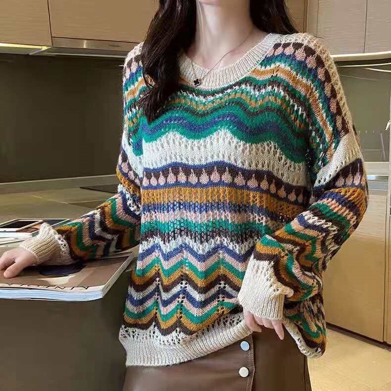 ✨Áo len nữ form rộng hoạ tiết phối màu xinh mẫu mới thu đông HB09
