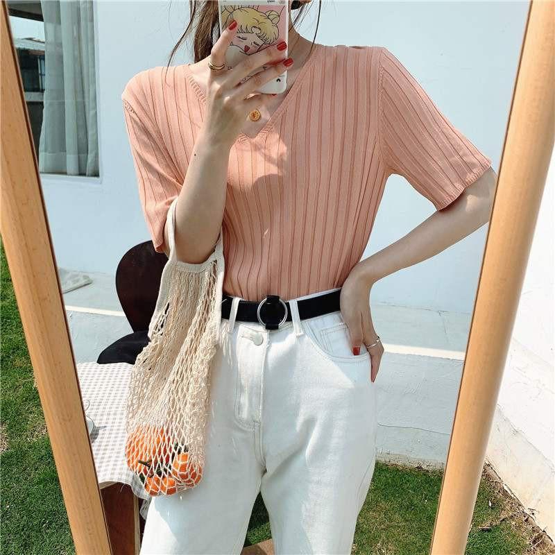 Áo len cộc tay nữ hàn quốc áo len tăm ngắn tay trơn basic chất đẹp Quảng Châu PANOSI - Mã A454