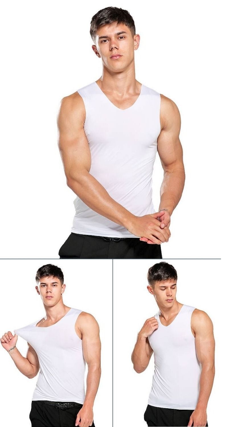 Áo lót nam áo ba lỗ body sát nách cổ chữ V vải lụa lạnh mát không đường may cao cấp Áo lót nam, áo ba lỗ Lụa lạnh cao cấp không đường may tập