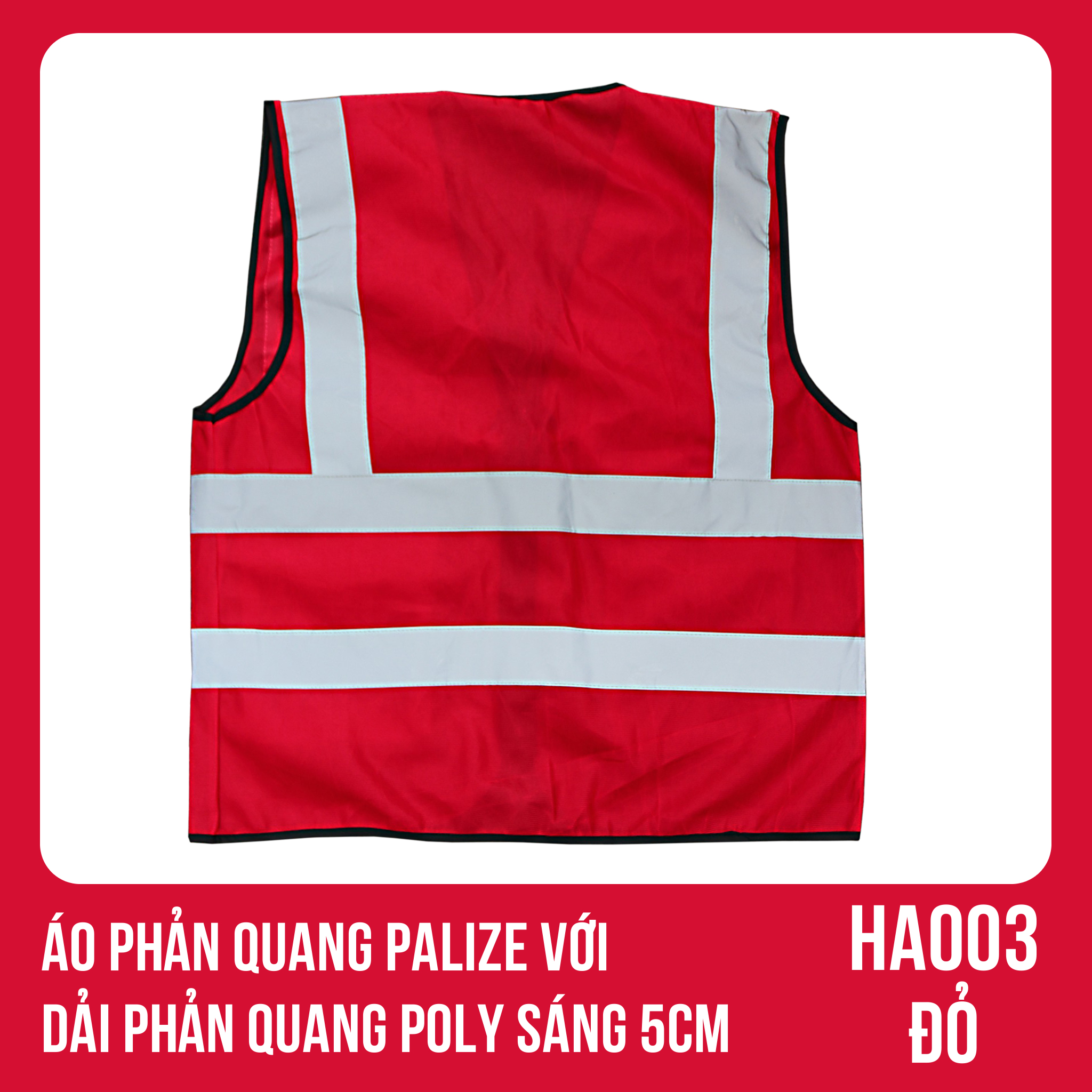 ✨Áo phản quang Palize với dải Phản quang Poly sáng 5cm màu ĐỎ - Mã HA003