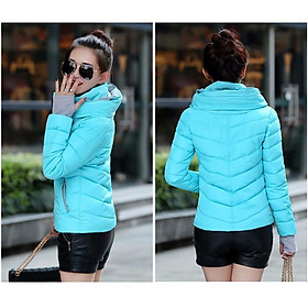 ✨ÁO PHAO NỮ CHẦN BÔNG 3 LỚP CỔ CAO CÓ NÓN -XANH NGỌC
