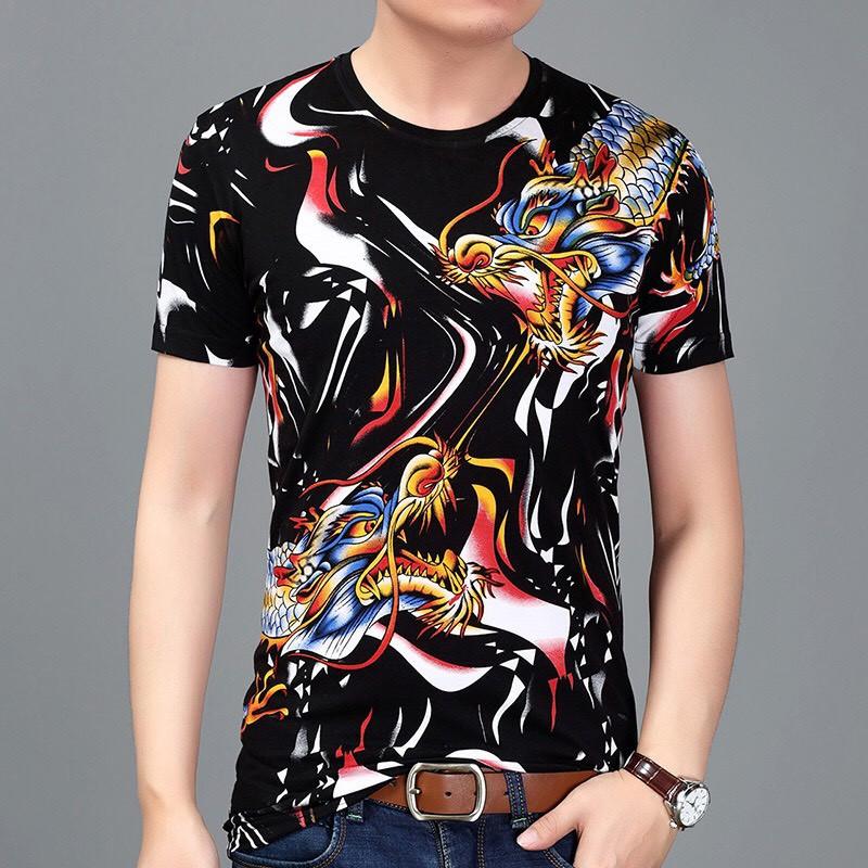 ✨Áo Phông Nam Cổ Tròn Có Tay Họa Tiết Rồng Triều Fancy ( Mã AN02)
