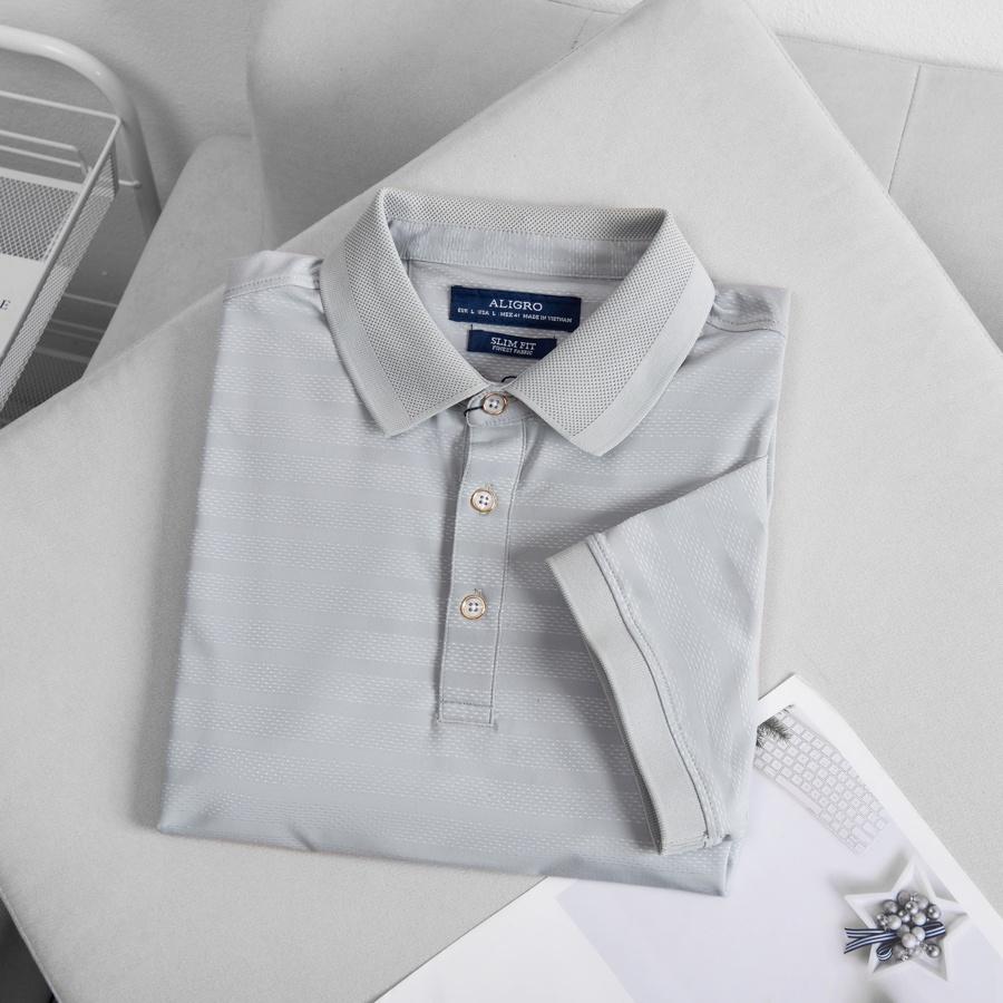 ✨Áo polo, áo phông, áo thun cổ bẻ nam màu ghi sáng Aligro chất liệu cotton, không xù, không bám dính, tôn dáng ALGPLO80