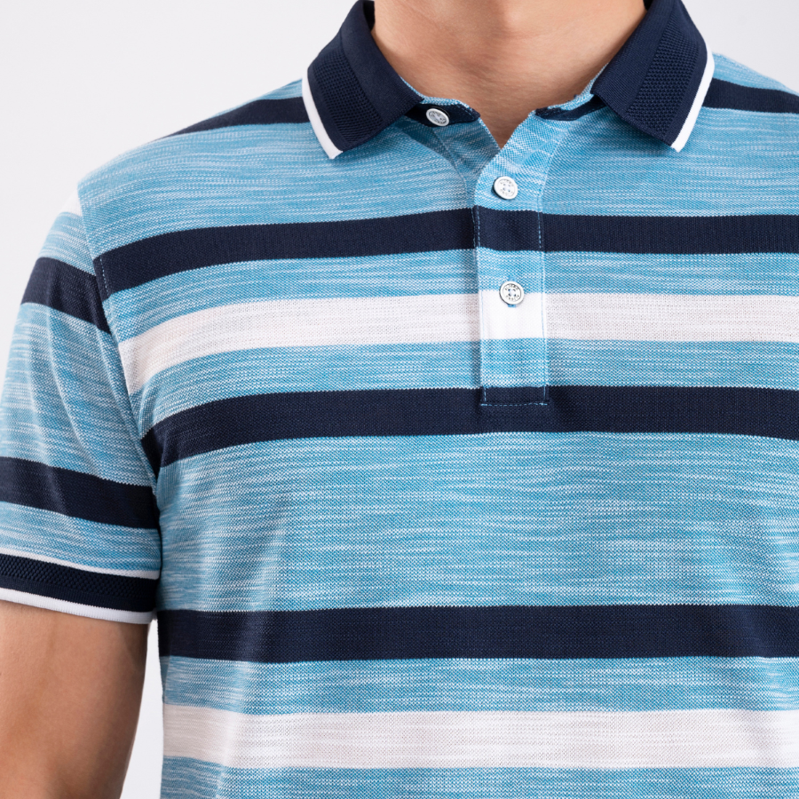 'Áo thun nam Polo NOVELTY kiểu dệt sọc Melange mới lạ, đẹp mắt. Chất vải siêu nhẹ, mỏng mát nhưng không kém phần tinh tế. Phù hợp với nhiều độ tuổi, phong cách. Có khả