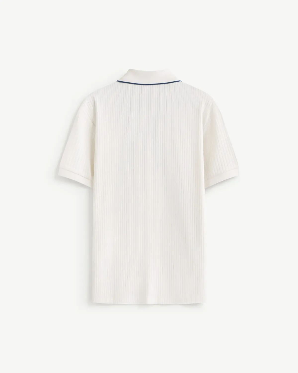 Áo thun Polo sọc ngang gân nổi trên nền vải melange, cổ bo jacguard mắt nhỏ - Kiểu dệt sọc mới tạo hiệu ứng gân nổi đặc sắc - 6 gam màu trung tính -