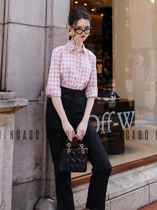 Áo sơ mi nữ dài tay caro sọc nhỏ