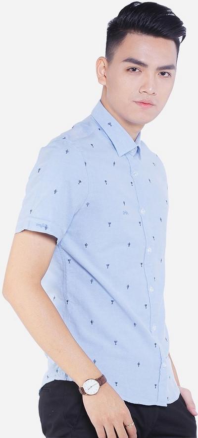 Áo SƠ MI NAM CỘC TAY HỌA TIẾT XANH ALIGRO ALGS-C88