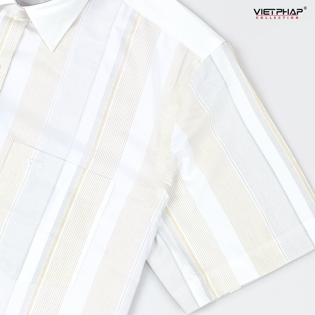 ✨Áo Sơ Mi Nam Ngắn Tay VIỆT PHÁP Form Luxury Chất liệu Bambo In Sọc lịch lãm, sang trọng 32768