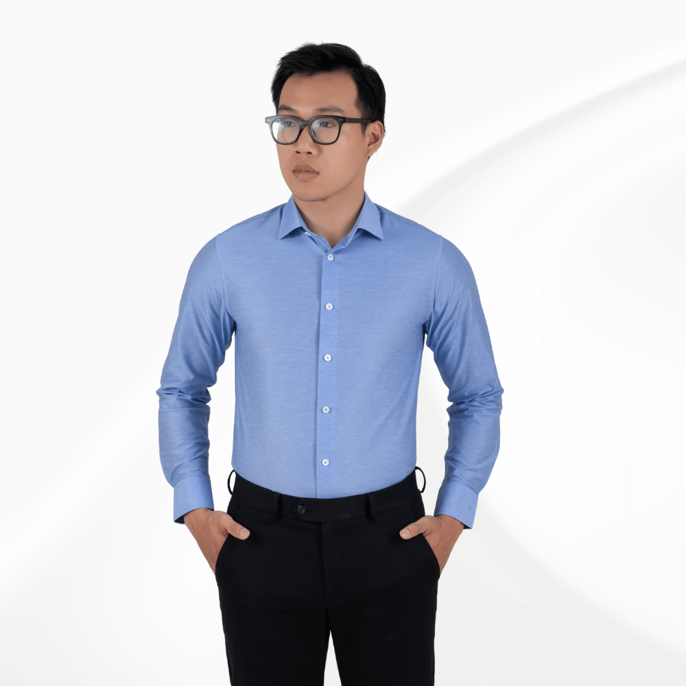Sơ mi nam dài tay | Xanh Navy | Phom dáng ôm trọn bờ vai | Chất vải mềm mại - Thoáng Khí