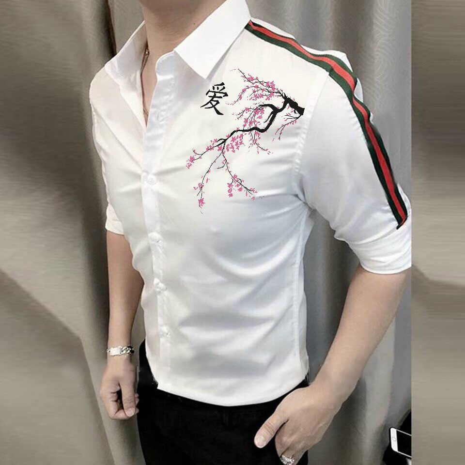 ✨Áo sơ mi nam tay dài viền vai họa tiết cây hoa anh đào