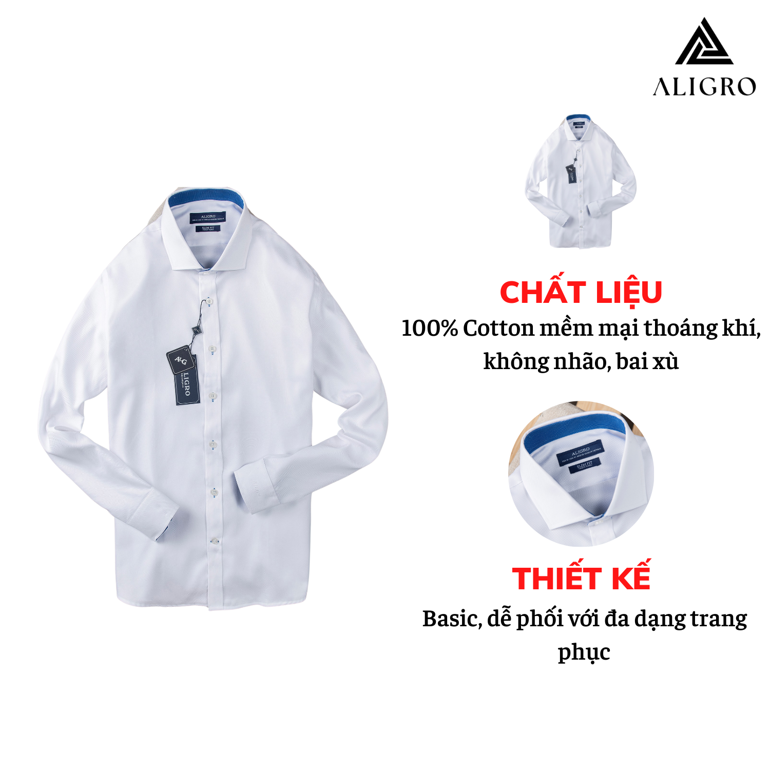 ✨ÁO SƠ MI NAM TRẮNG DÀI TAY PHỐI CỔ XANH ALIGRO DÁNG SLIMFIT MÃ ALGS195