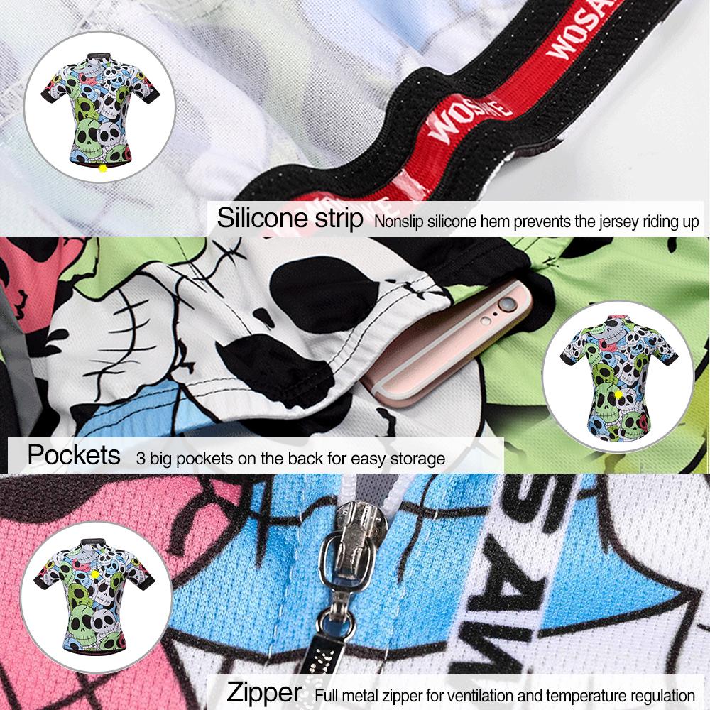 This cycling jersey is lightweight, quick drying and moisture-wicking. The mesh fabric makes it more breathable, keeping you cool and comfortable when riding the bike. It is colorful printed, very stylish and sporty.