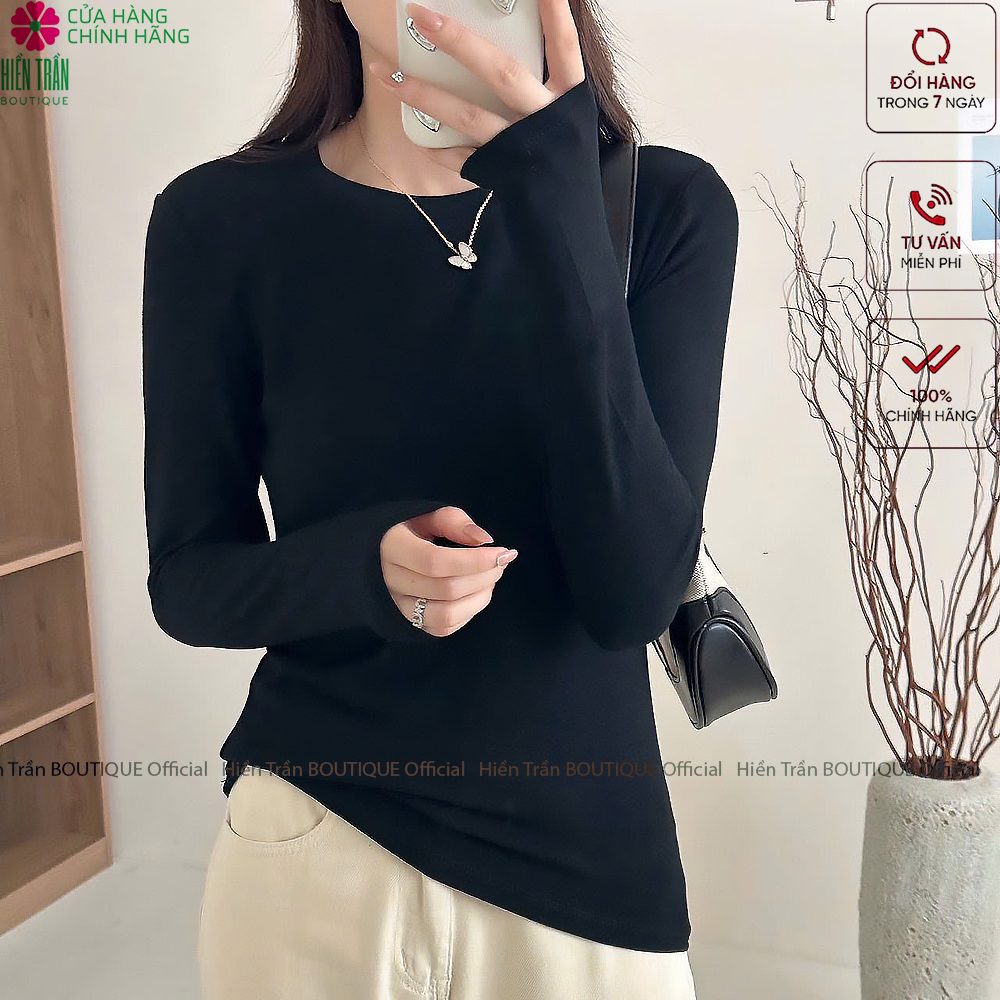 ✨Áo thun dài tay nữ Hiền Trần BOUTIQUE cổ tròn nhẹ dáng suông rộng thoải mái vải cotton mềm mại kiểu nữ tính A12 Women Top