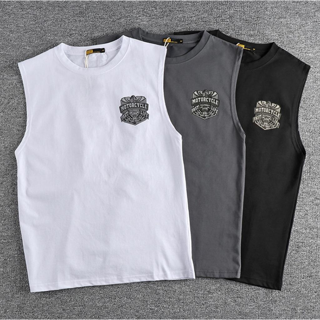 Áo thun không tay phong cách Retro_Biker_dã ngoại Chất liệu cotton mặc siêu thoáng mát luôn ạ Phom chuẩn mặc cực bụi và ngầu nhé anh em Hình chìm cực kỳ sắc nét, cam kết