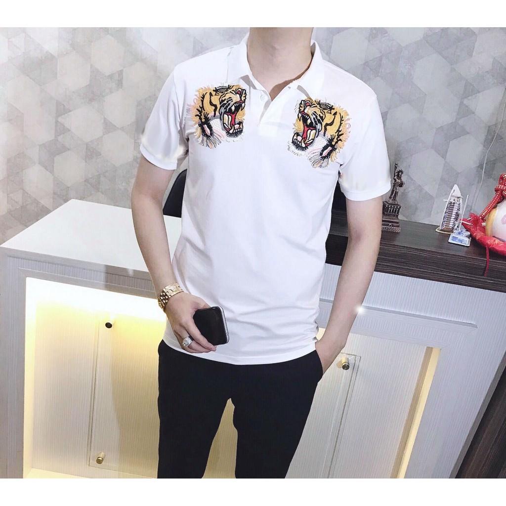 Loại sản phẩm: Áo Thun Nam Ngắn Tay Có Cổ Phối Họa Tiết Thêu Hai Đầu Hổ Cao Cấp