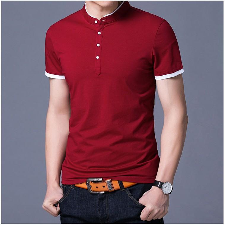 ✨ÁO THUN NAM NGẮN TAY CỔ TRỤ PHONG CÁCH HÀN QUỐC ATN01-ĐỎ
