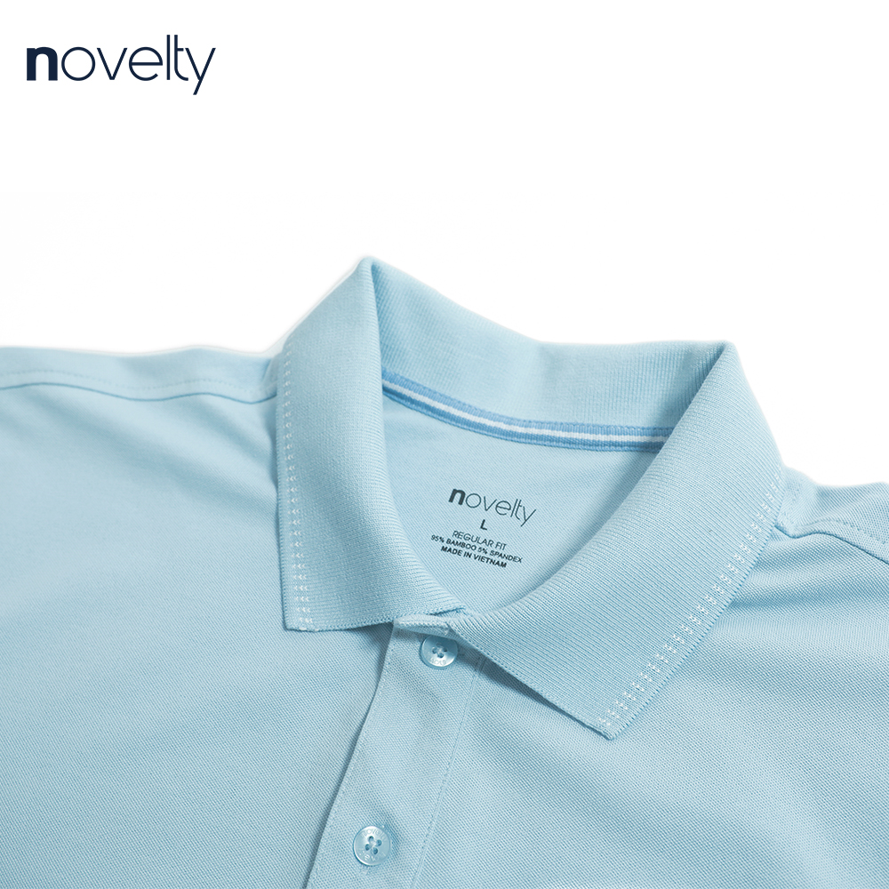 Áo thun nam Polo NOVELTY trơn màu cổ bo 210127N với thiết kế cổ bo dệt trơn có viền sọc mới lạ, đẹp mắt. Chất vải siêu nhẹ, mỏng mát nhưng không kém phần tinh