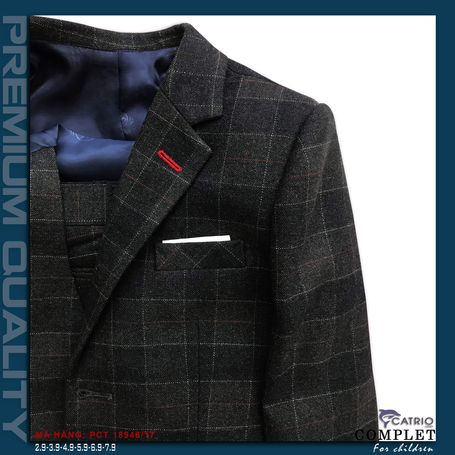 ✨ÁO VEST BÉ TRAI CATRIO PCT14946/17 là áo đờ mi, áo khoác vest trẻ em từ 8 tuổi(29kg) đến 12 tuổi(49kg) thuộc bộ sưu tập quần áo complet veston trẻ em cho mùa lễ hội tết tiệc cưới sự kiện sinh nhật, được làm bằng vải dạ cao cấp nhất, đẹp đến từng chi tiết