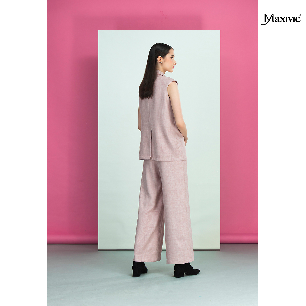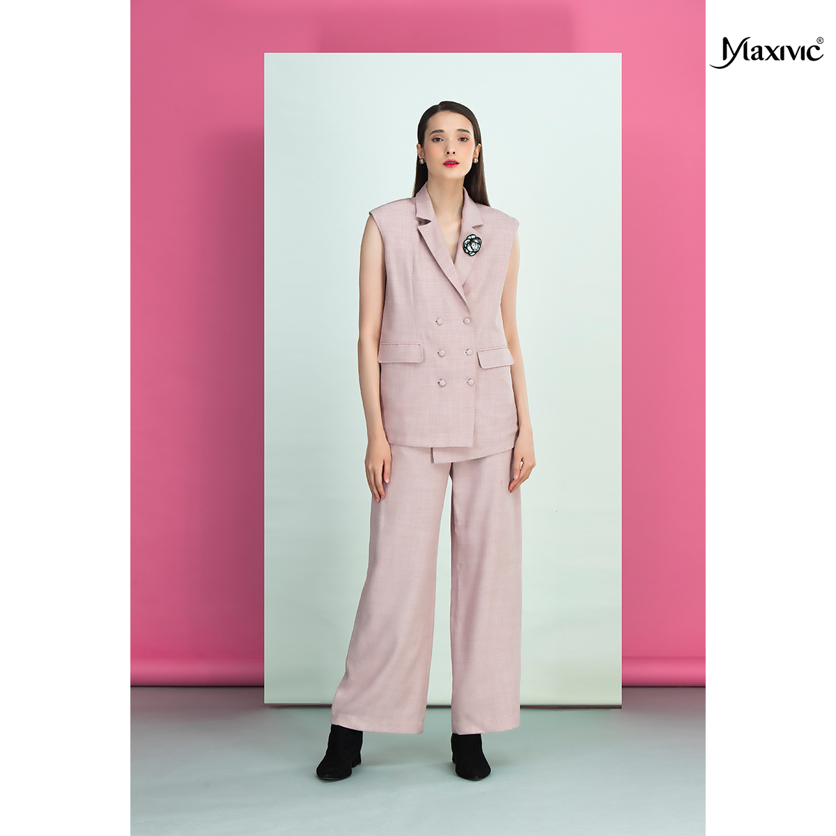 ✨Áo vest hồng cotton bố, cổ đan tông Maxivic M032401A