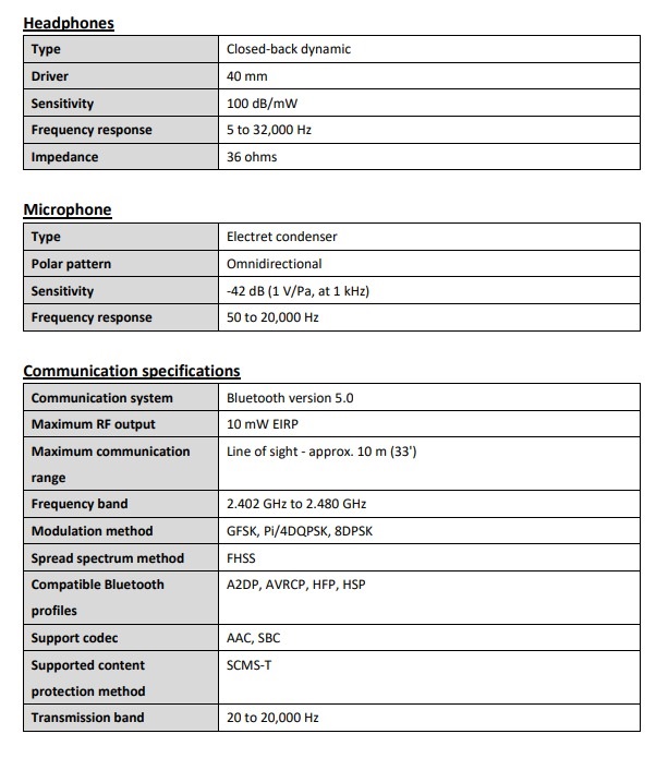 Loại tai nghe : Tai nghe chụp tai ( Over ears ) Trở kháng : 32Ω Các kết nối không dây : Bluetooth 5.0 Khoảng các kết nối tốt đa 20m Giao thức Bluetooth :