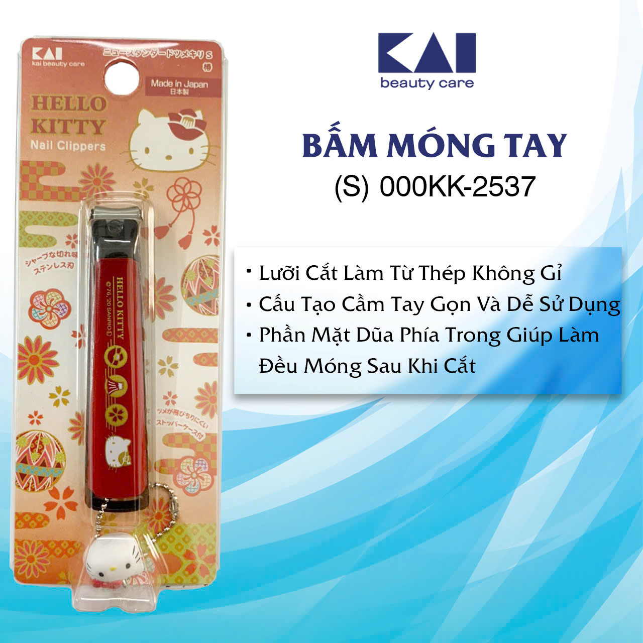 Bấm Móng Tay Kai Thép Không Gỉ 000KK-2537 (Size S) Thương hiệu : Kai Xuất xứ : Nhật Bản Mã vạch : 4901601308785 HSD: Vô thời hạn Quy cách: 1 vỉ 1 cái 1/ Thành