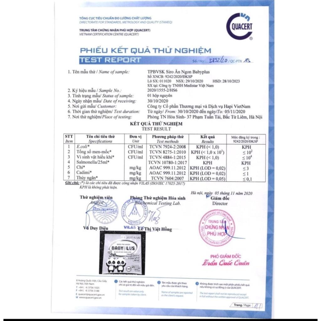 Siro Ăn Ngon BABYPLUS - Giúp Bé Tăng Cân, Tiêu Hoá Tốt, Tăng Cường Đề Kháng, Hết Táo Bón