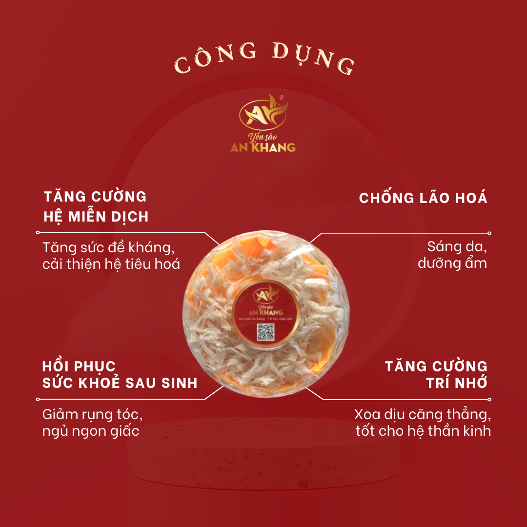 Tác dụng của tổ yến Đối với cơ thể, tổ yến có tác dụng toàn diện trên hệ thần kinh, hệ hô hấp, hệ tiêu hóa và rất nhiều cơ quan khác. Cứ trong 100g