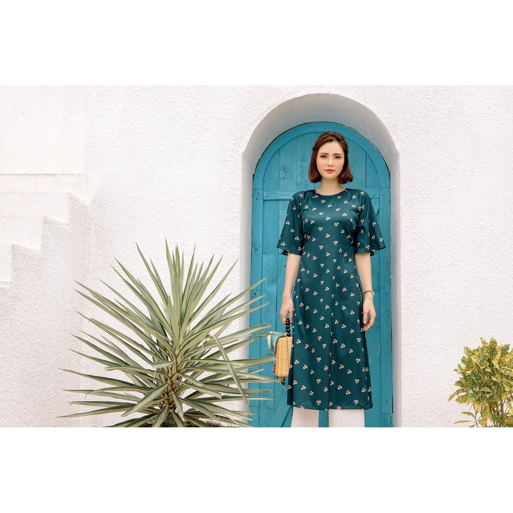 ✨Baciami-Bộ Áo Dài Lụa Xanh Hoa Nhí