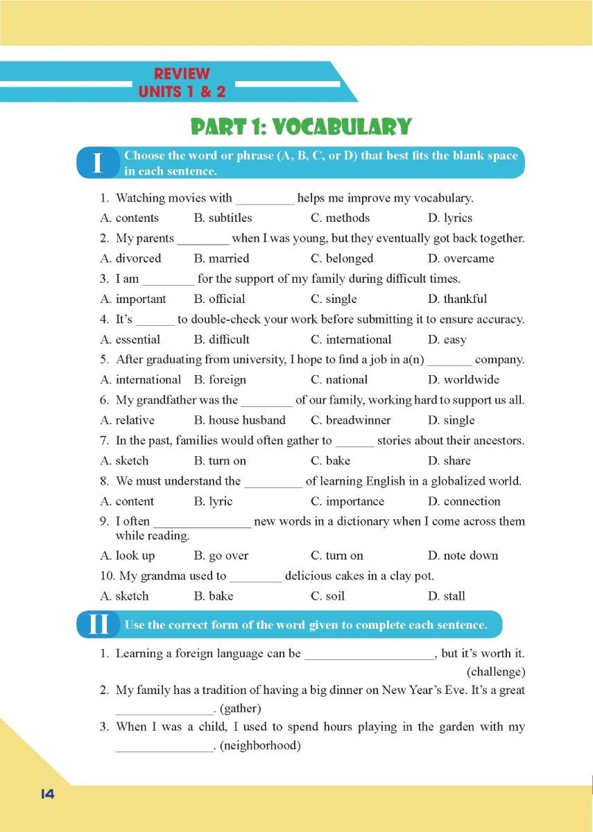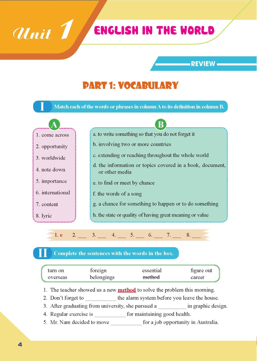 Là cuốn sách giúp học sinh lớp 9 củng cố từ vựng sau các bài học trên lớp.