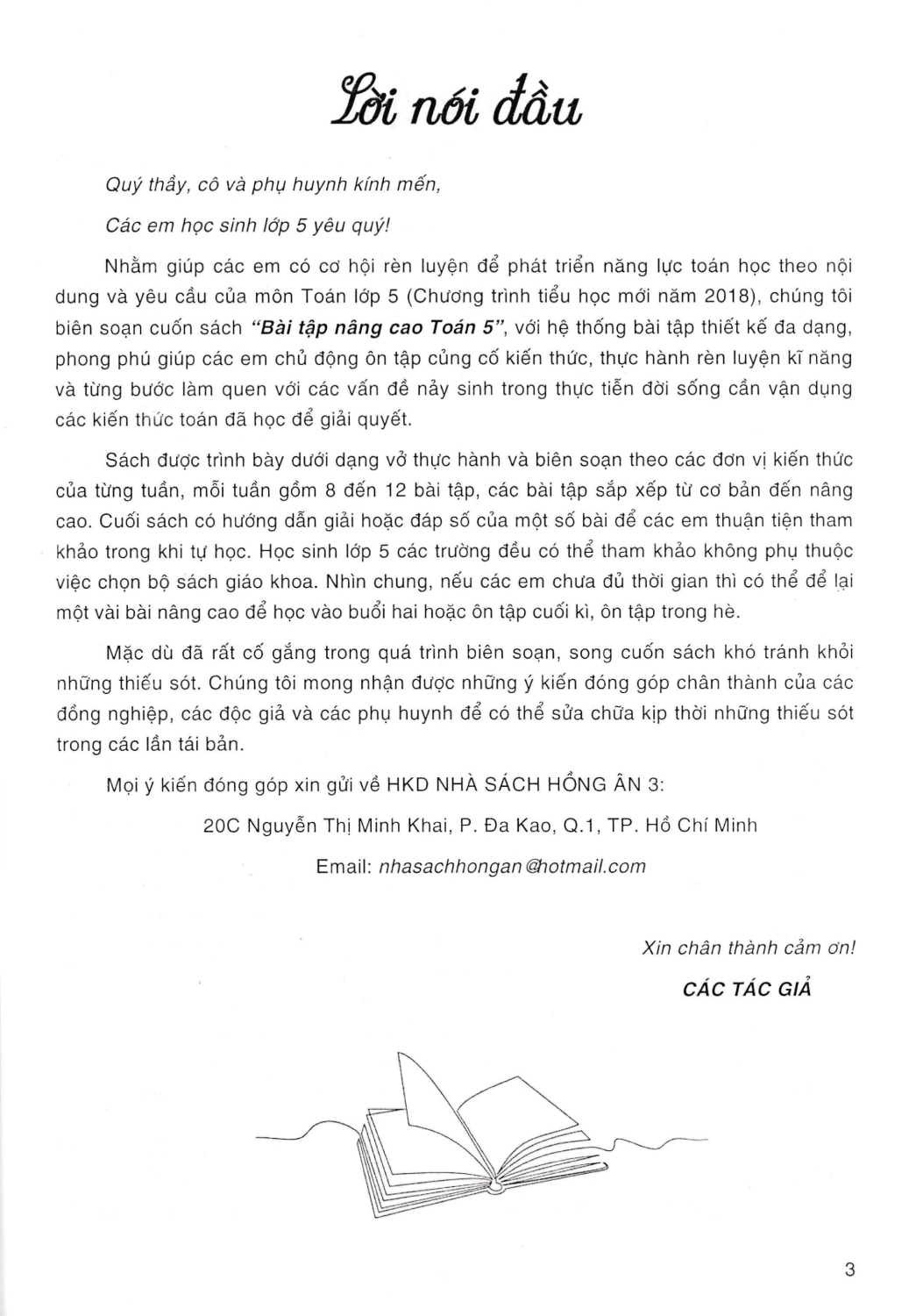 Toán Nâng Cao 5 Nhằm giúp học sinh tiểu học có thể tự rèn luyện và nâng cao kiến thức môn Toán, chúng tôi đã biên soạn bộ sách “Toán nâng cao và bồi dưỡng