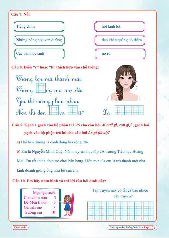 Nhằm đáp ứng nhu cầu học tập của học sinh tiểu học, đồng thời giúp học sinh ôn luyện các dạng bài tập theo từng tuần. Chúng tôi đã biên soạn cuốn sách Bài Tập tuần Tiếng Việt 2 - Tập 1 - Cánh diều để giúp học sinh ôn tập, tổng hợp kiến thức, rèn luyện các dạng bài tập theo từng tuần học.
