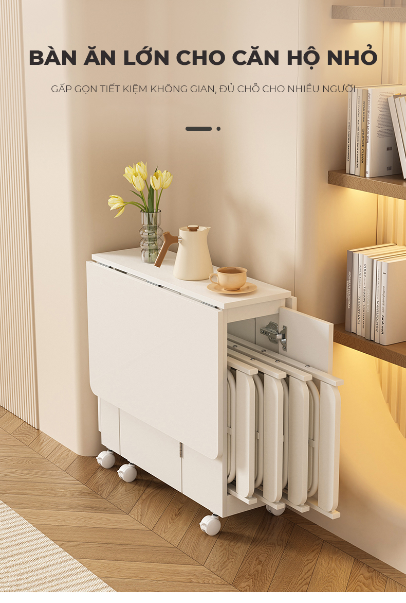 BÀN ĂN THÔNG MINH SẢN PHẨM ƯU VIỆT CHO CĂN HỘ - Bàn ăn được thiết kế thông minh với kích cỡ vừa phải có thể thu gọn sau khi sử dụng