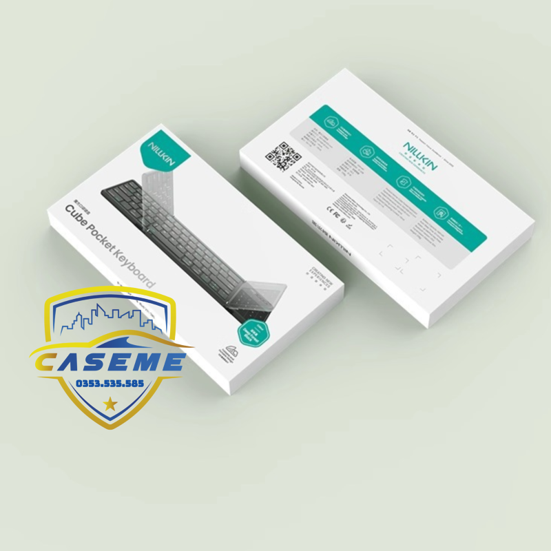 Tương thích iOS, Android, Windows, MacOS. Thông số kỹ thuật Thuộc tính Thông tin Thương hiệu Nillkin Mã sản phẩm Cube Pocket Foldable Keyboard Kích thước mở 34.2 x 10.8 x 0.95 cm Kích thước gập 18.2 x 10.8 x 1.6 cm Trọng lượng 238g Kết nối Bluetooth 5.0 – 10m Kết nối đa thiết bị Tối đa 3 thiết bị Pin 140mAh – dùng 10h Tự ngắt Sau 10 phút không sử dụng Chuyển chế độ Fn + Command Bảo hành 3 tháng – 1 đổi 1 nếu lỗi do NSX Bộ sản phẩm gồm: