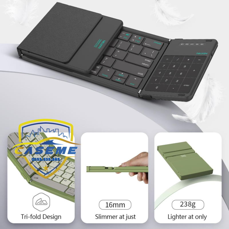 Bàn Phím Bluetooth Gập Gọn Nillkin Cube Chính Hãng – Tích Hợp Touchpad – Bọc Da Cao Cấp – Dùng Cho Smartphone, iPad, Laptop Điểm nổi bật - Thiết kế gập 3 siêu gọn –