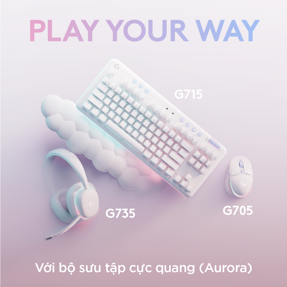 MÔ TẢ SẢN PHẨM Bàn phím cơ gaming không dây Logitech G715 TKL từ Bộ sưu tập Aurora đem lại những rung động phím thấp với hiệu suất phím cao, do đó bạn có thể