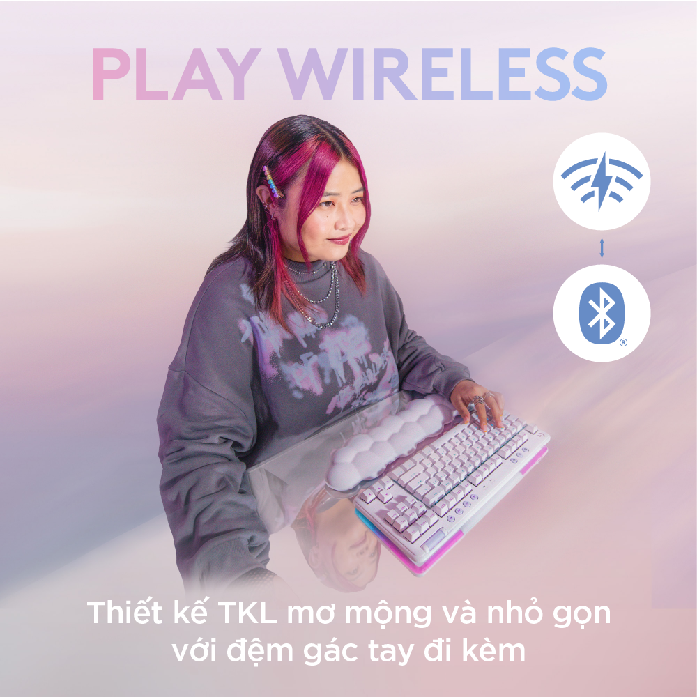 Nổi bật với thiết kế màu trắng mơ màng và chỗ gác tay trên bàn phím có hình đám mây thoải mái. Với bố cục rút gọn TKL và độ cao điều chỉnh được, đây là bàn phím cơ học nhỏ gọn lý tưởng để chơi game, đem lại cho bạn cảm giác tuyệt vời khi chơi suốt cả ngày dài.
