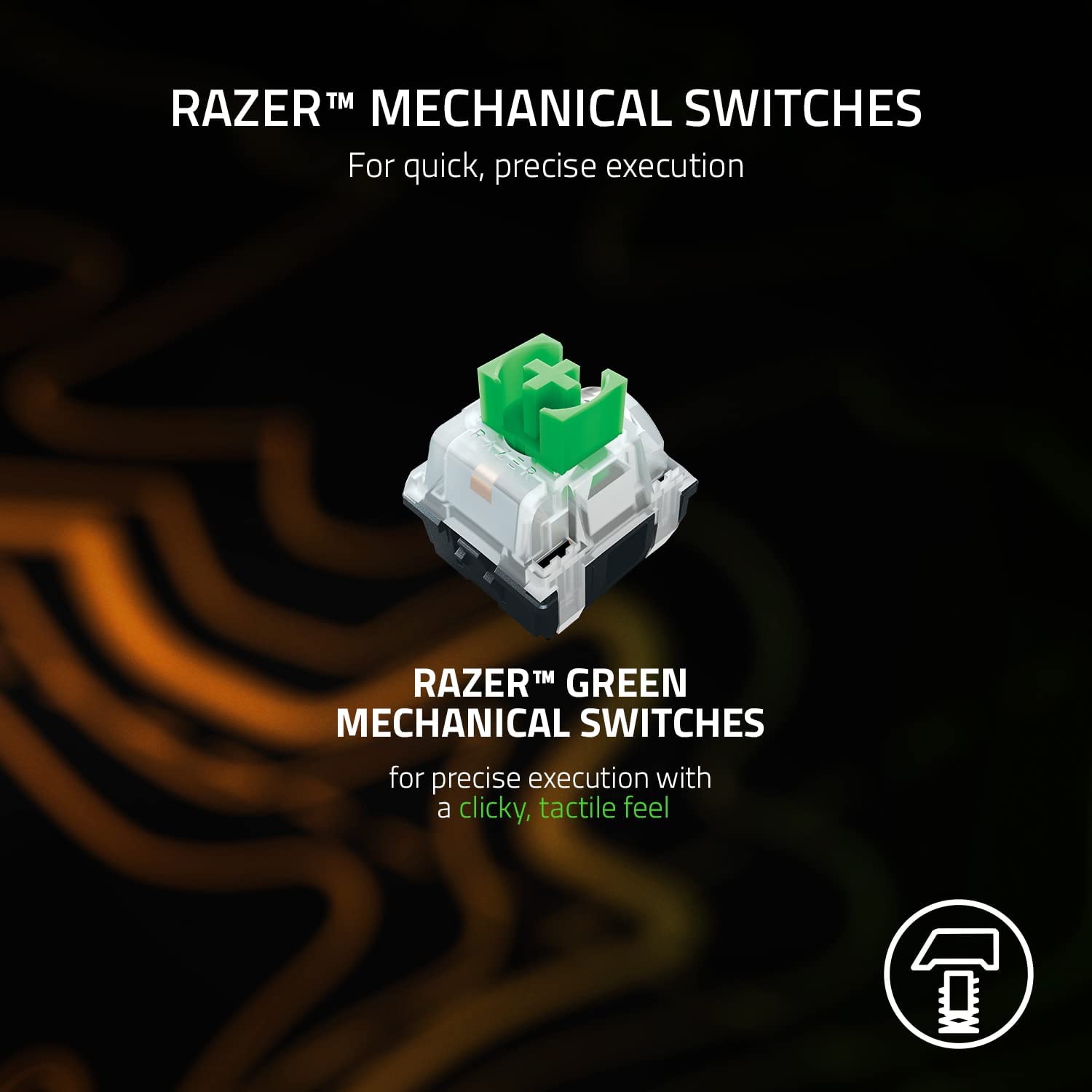 Các Switch cơ Razer (Clicky hoặc Linear) cho khả năng thực thi chính xác và nhanh Ánh sáng trên mỗi phím và underglow 2 bên được trang bị hệ thống chiếu sáng Razer Chroma RGB