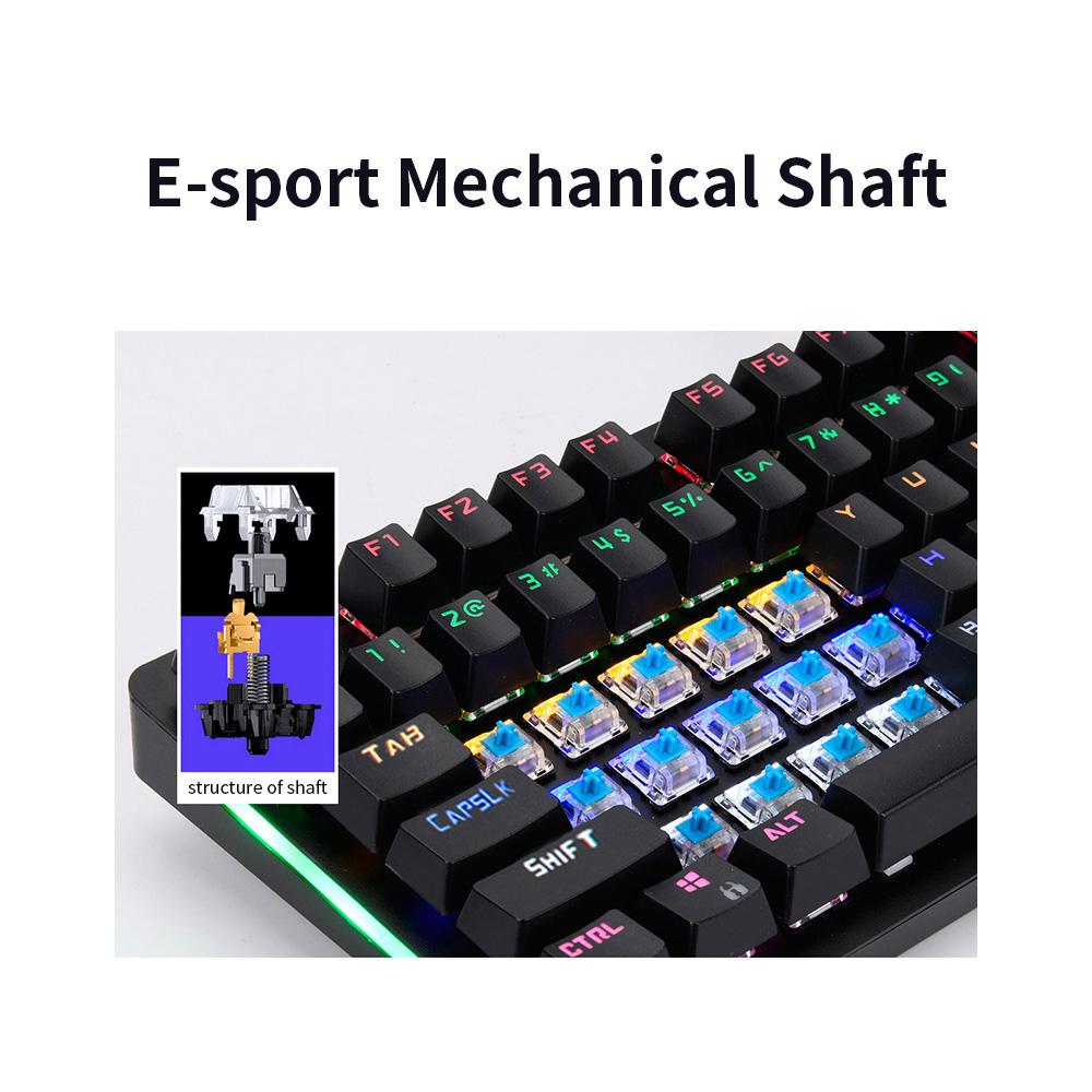 The professional mechanical keyboard and gaming mouse is your ideal choicefor E-sports game. Mechanical shaft gives you ultimate using experience.Colorful light creates marvellous gaming atmosphere. Together with thiskeyboard and mouse combo, every battle will be exciting.