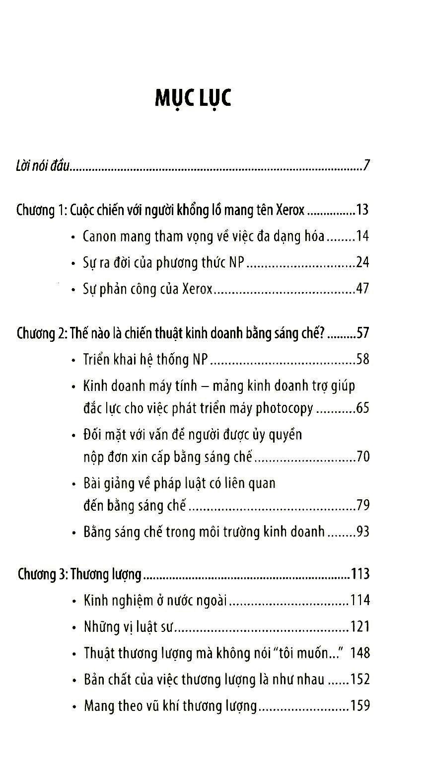 Năm 1960, Canon đứng trước một sự thay đổi mang tính cách mạng. Từ một công ty chỉ sản xuất máy ảnh cao cấp, họ phải tiến hành đại chúng hóa và đa dạng hóa sản phẩm để vươn lên tầm cao mới. Một trong những nhân tố quan trọng nhất giúp Canon tiến hành cách mạng thành công là sở hữu trí tuệ, và người tiên phong trong lĩnh vực này chính là Giichi Marushima – Giám đốc sáng chế của Canon. Vậy việc vận dụng bằng sáng chế như một chiến lược của công ty cụ thể là gì? Những người Nhật được sinh ra vào năm thứ 9 thời Chiêu Hòa (tức năm 1934) đã nghênh chiến với những doanh nhân người Mỹ như thế nào? Và doanh nhân Nhật cần phải suy nghĩ và vận dụng quyền sở hữu trí tuệ hoặc bằng sáng chế vào công việc ra sao?
