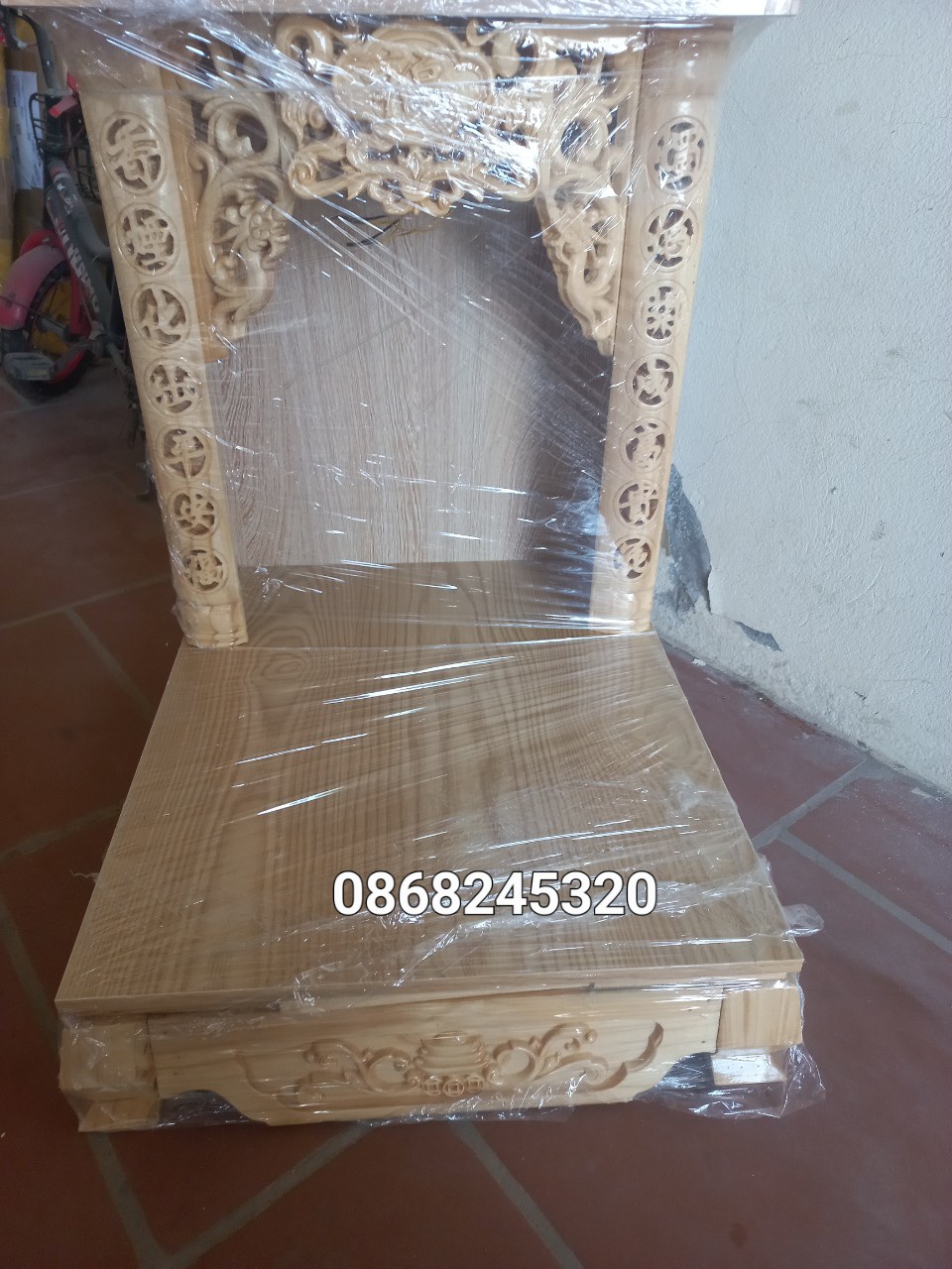 _ Bộ bàn thờ chung cư được làm bằng chất liệu gỗ sồi nga tự nhiên 100% _ Kích thước bàn thờ 89×48cm + ám khói 41×61cm khung gỗ sồi cnc chắn bằng mica+ chữ