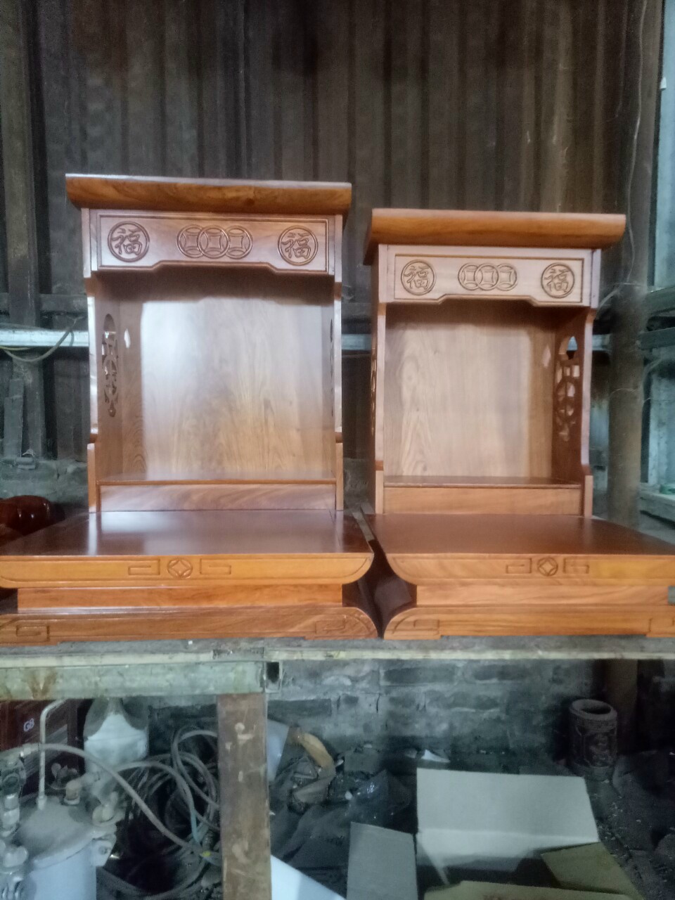 Khách Hà Nội Đặt Cặp Đôi Bàn Thờ Thần Tài Ông Địa Gỗ Hương Đá (Gõ Đỏ) Tại Đồ Gỗ Đẹp Trọng Minh