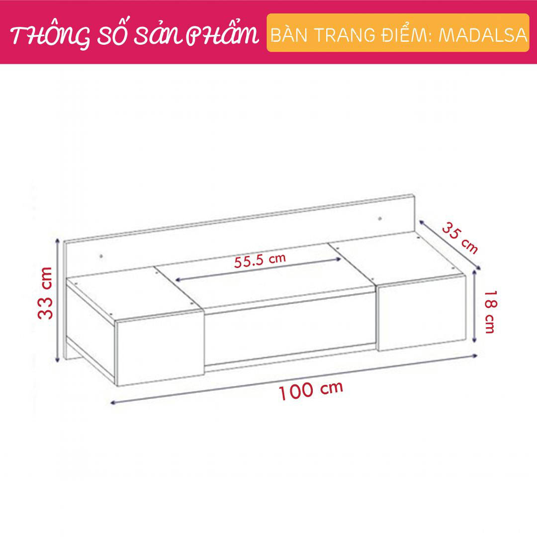 - Kích thước: Dài 100cm x Rộng 35cm x Cao 33cm