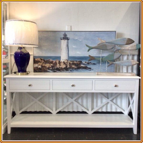 - Phong cách theo xu hướng Hamptons Style, được làm từ gỗ keo sơn trắng