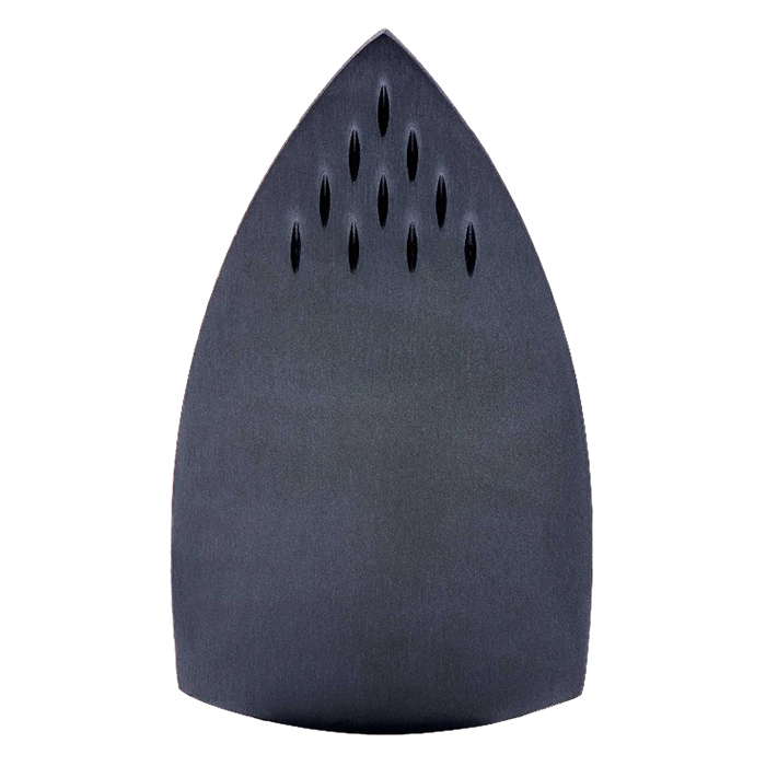 Đế bàn ủi làm đúc nguyên khối, với 10 lỗ thoát hơi trãi theo hình tam giác, giúp việc ủi dễ dàng hơn và nhanh chóng hơn. Lượng hơi nước ra khô và nóng giúp ủi nhanh, mau có li.