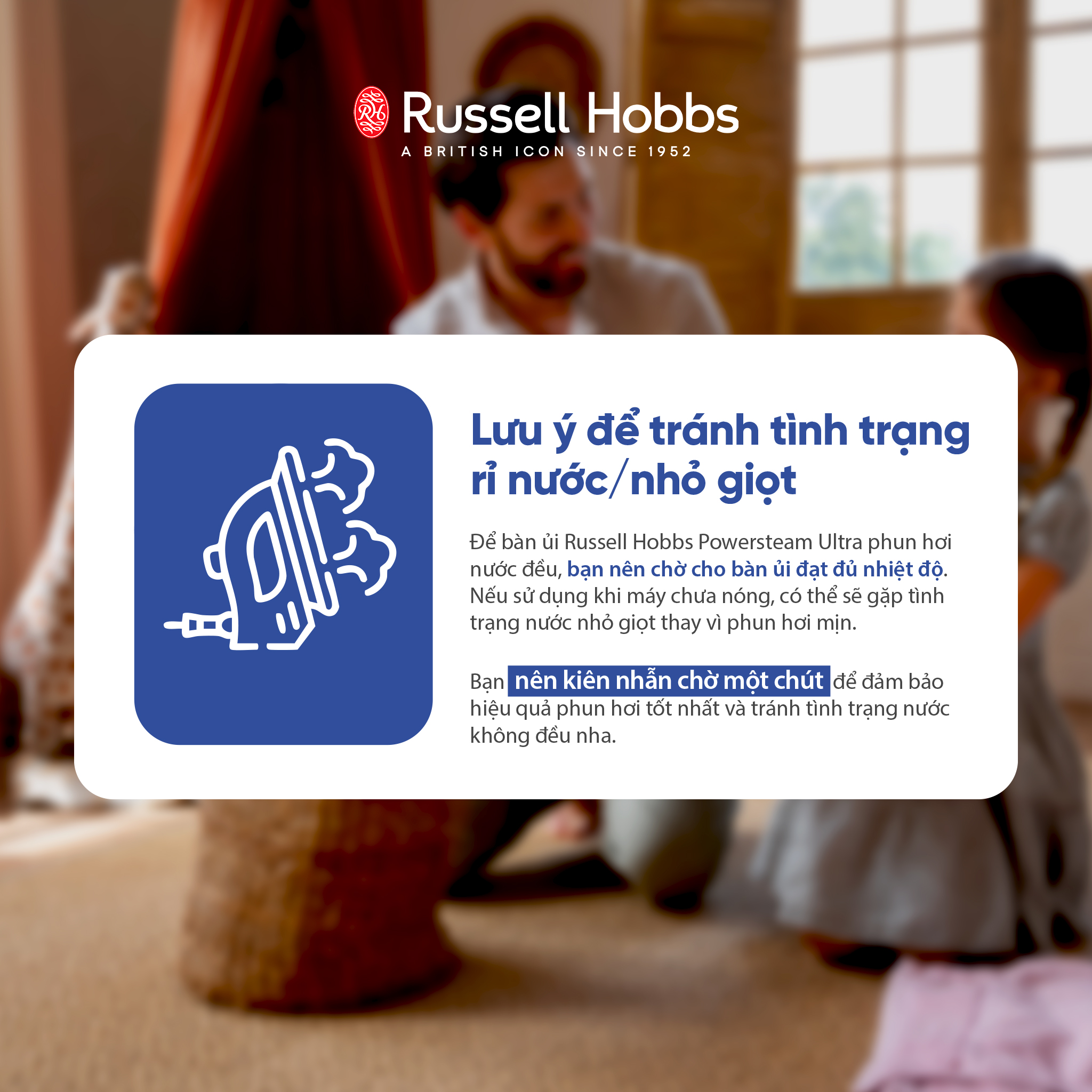 Thương hiệu RUSSELL HOBBS Model 28040-56 Nhập khẩu 100% từ Đức & EU Xuất xứ Nhập Khẩu Đức & EU Loại bàn ủi Bàn ủi cầm tay Công suất 1800W Dung tích ngăn chứa nước